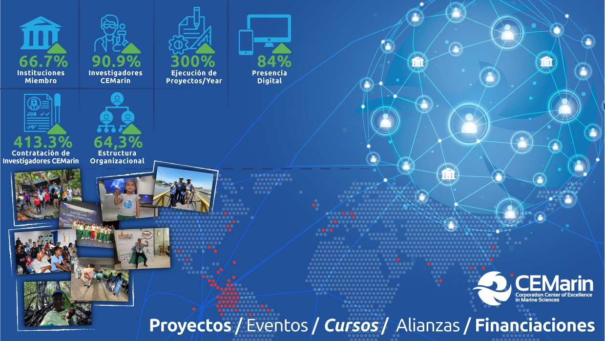 Bajo el liderazgo de Dr. Andrés Osorio, la corporación impulsó más de 20 proyectos en el Pacífico y el Caribe colombiano, así como iniciativas regionales en Ecuador, Panamá, Costa Rica, Jamaica y Aruba. La red de investigadores creció significativamente y se sumaron nuevas instituciones académicas, fortaleciendo la cooperación colombo-alemana que caracteriza a CEMarin. Todo esto sin dejar de lado la activa participación de investigadores de todo el mundo en congresos, cursos, conferencia y eventos liderados y co-organizador por la corporación.